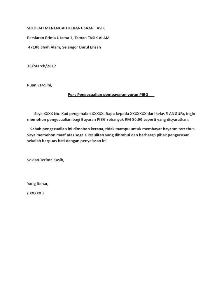 Surat Pengecualian Bayaran Pibg PDF